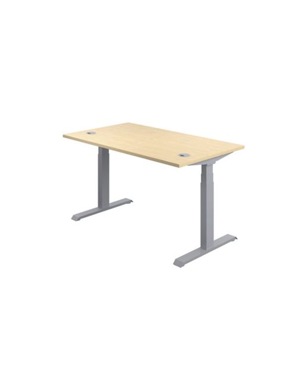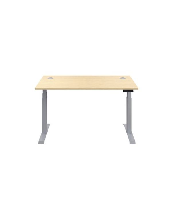 Jemini Sit/Stand Desk with Cable Ports 1600x800x630-1290mm Maple/Silver KF809951