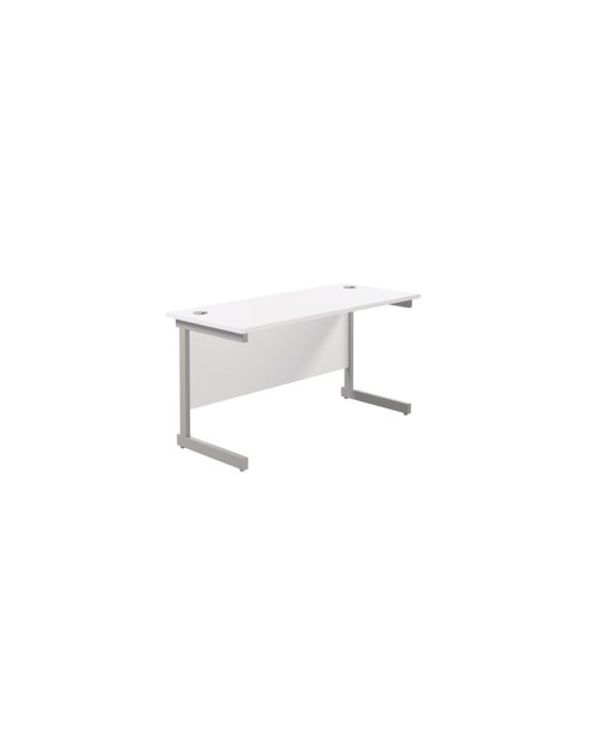 Jemini Single Rectangular Desk 1400x600x730mm White/Silver KF800559