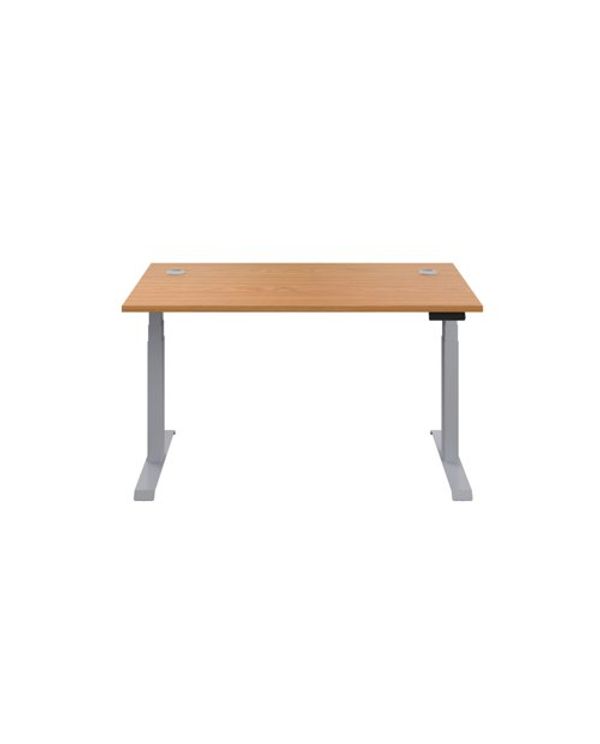 Jemini Sit/Stand Desk with Cable Ports 1600x800x630-1290mm Nova Oak/Silver KF809968