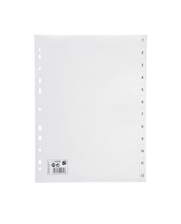 5 Star Office Index 1-12 Polypropylene Multipunched Reinforced Holes 130 Micron A4 White
