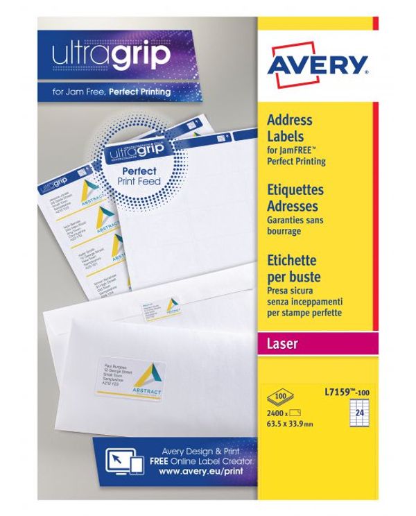 Avery Ultragrip Laser Labels 63.5x33.9mm White (Pack of 2400) L7159-100