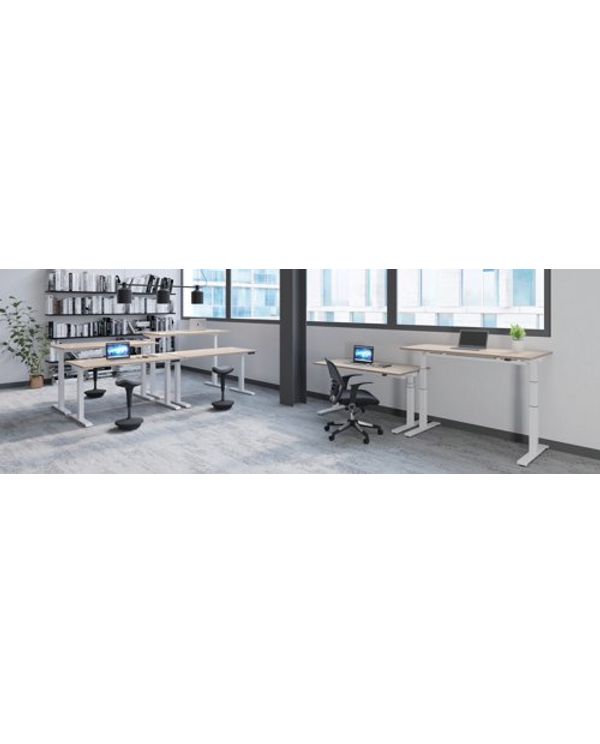 Jemini Sit/Stand Desk with Cable Ports 1600x800x630-1290mm Dark Walnut/White KF809999