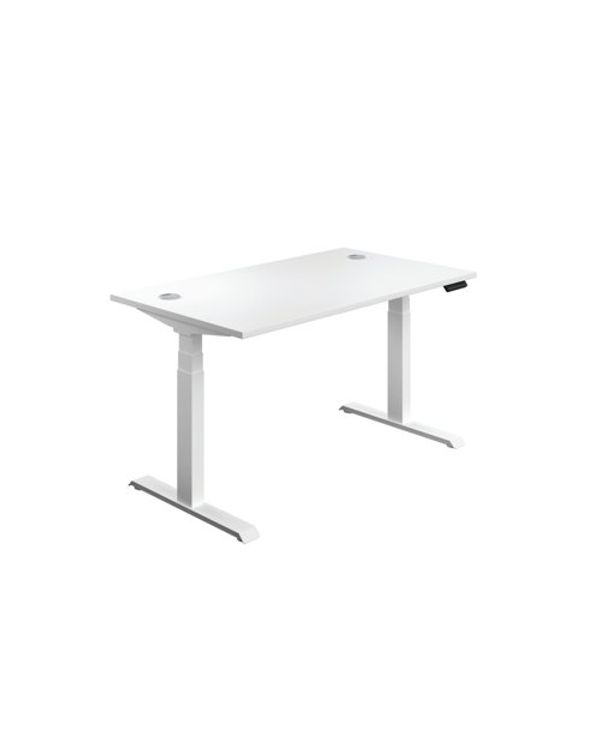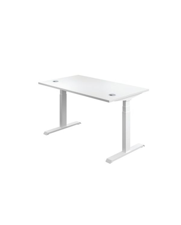 Jemini Sit/Stand Desk with Cable Ports 1600x800x630-1290mm White/White KF810032