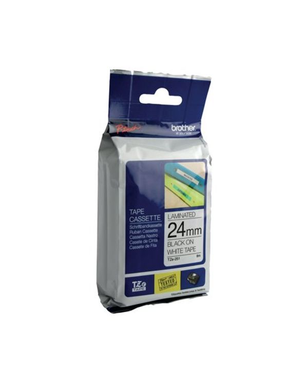 Brother P-Touch TZe Lam Tape Cassette 24mm x 8m Black on White Tape TZE251