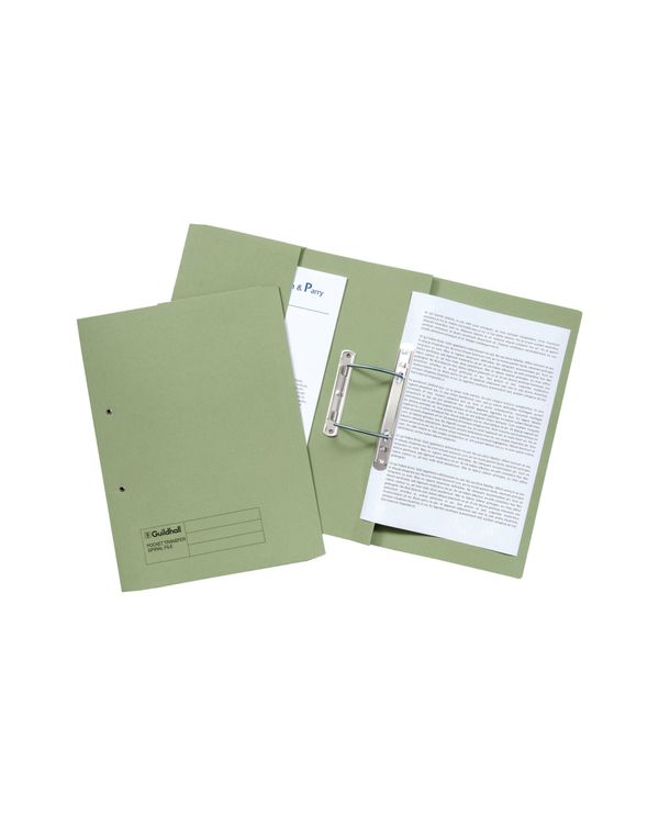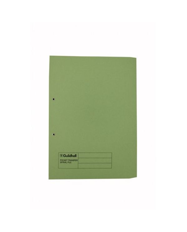 Exacompta Guildhall Transfer Spiral Pocket File 315gsm Foolscap Green (Pack of 25) 349-GRN