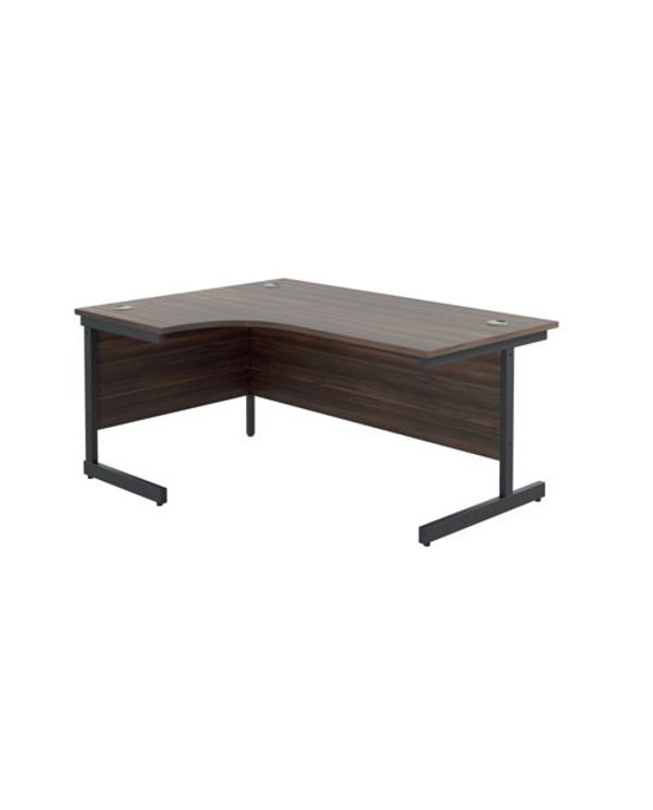 Jemini Radial Left Hand Single Upright Cantilever Desk 1600x1200x730mm Walnut/Black KF819639
