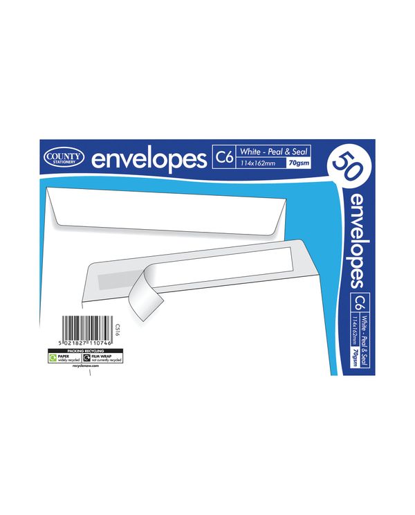 County Stationery C6 Peel and Seal Envelope x50 White 114x1162mm (Pack of 20) C516