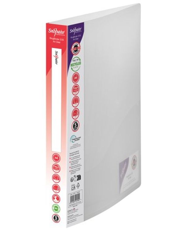 Snopake 2 Ring Binder 25mm A4 Clear (Pack of 10) 10183