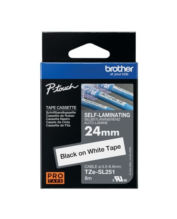 Brother P-Touch TZe Self-Laminating Tape Cassette 24mm x 8m Black on White Tape TZE-SL251