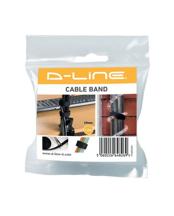 D-Line Cable Tidy Band Reusable Hook and Loop Black CTTAPE20001