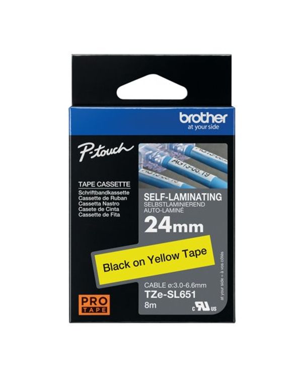 Brother P-Touch TZe Self-Laminating Tape Cassette 24mm x 8m Black on Yellow Tape TZE-SL651