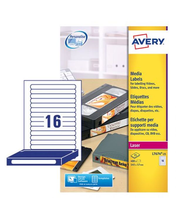 Avery Video Spine Label 145x17mm 16 Per Sheet White (Pack of 400) L7674-25