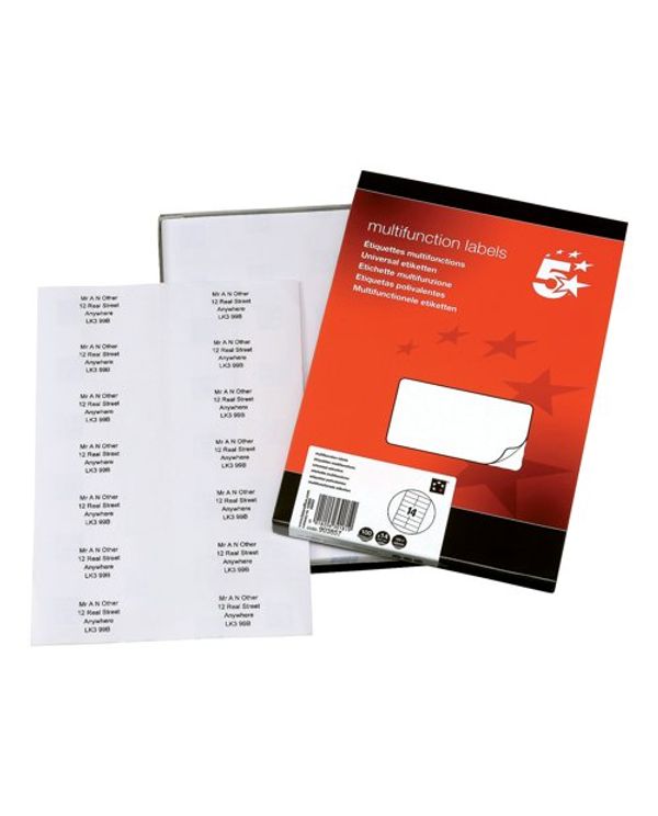 5 Star Multipurpose Labels Laser Copier Inkjet 105x42mm White (Pack of 1400) 903857