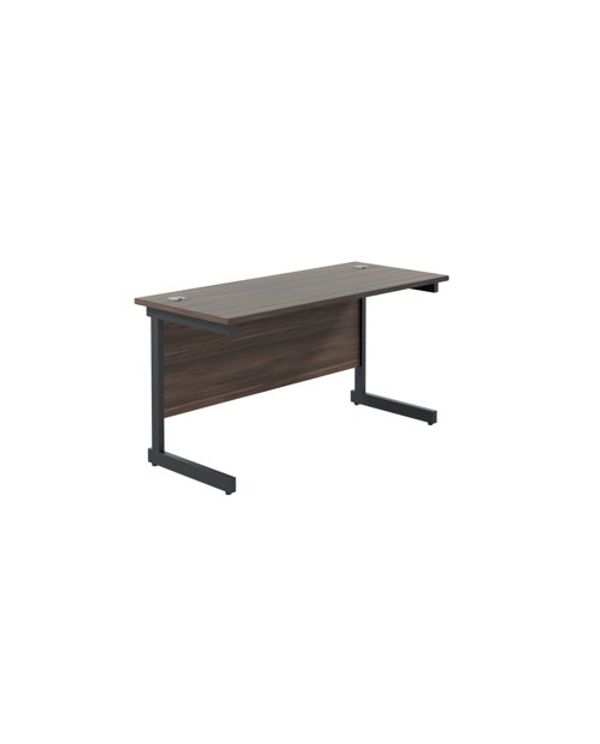 Jemini Rectangular Single Upright Cantilever Desk 1400x600x730mm Dark Walnut/Black KF810643