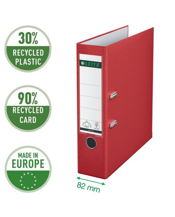 Leitz 180 Lever Arch File Poly 80mm A4 Red (Pack of 10) 10101025