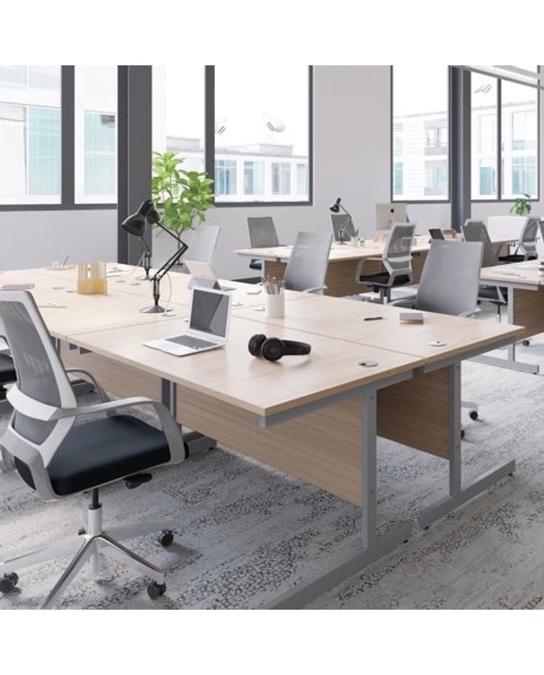 Jemini Single Rectangular Desk 1600x800x730mm Maple/Silver KF801285