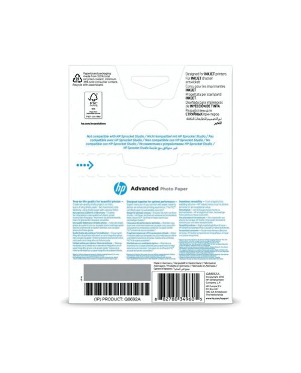 HP Advanced Glossy Photo Paper 10 x 15cm Borderless 250gsm (Pack of 100) Q8692A