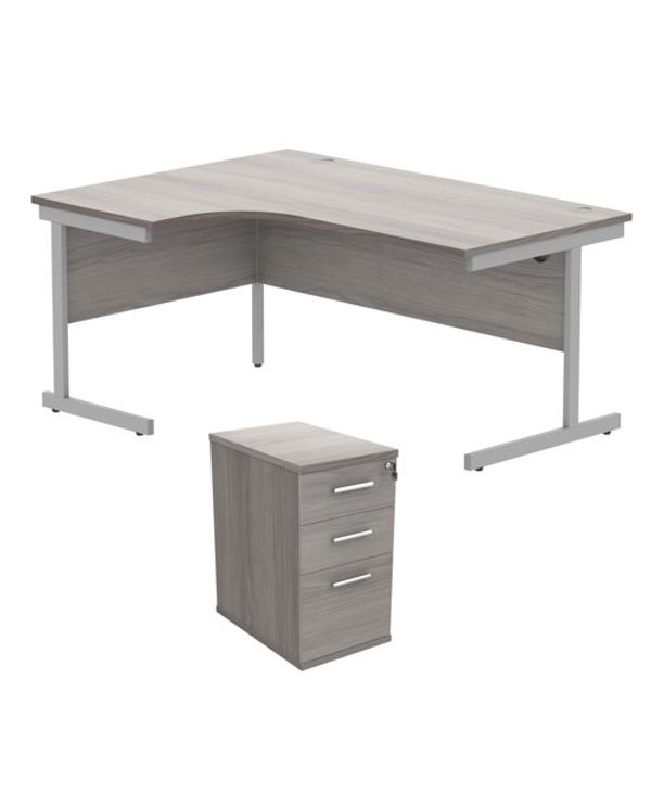 Astin Radial Left Hand SU Desk +Desk High Pedestal 1600x1200 Alaskan Grey Oak/Silver KF820127
