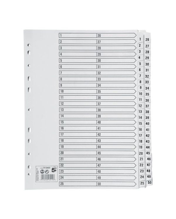 5 Star Office Index 1-50 Multipunched Mylar-reinforced Strip Tabs 160gsm A4 White