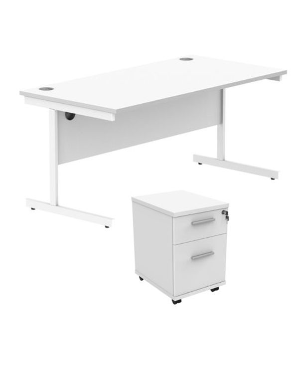 Astin Rectangular Desk 1600x800x730mm +2Drw Under Desk Pedestal Arctic White/Arctic White KF820217