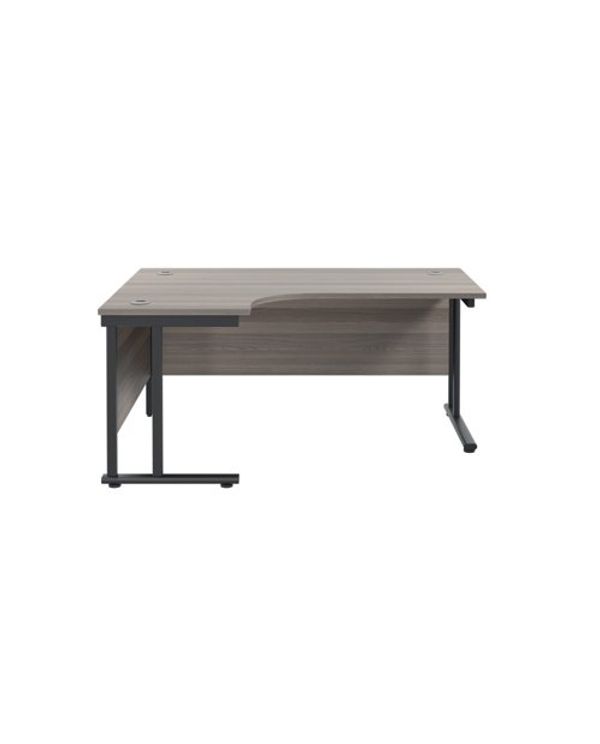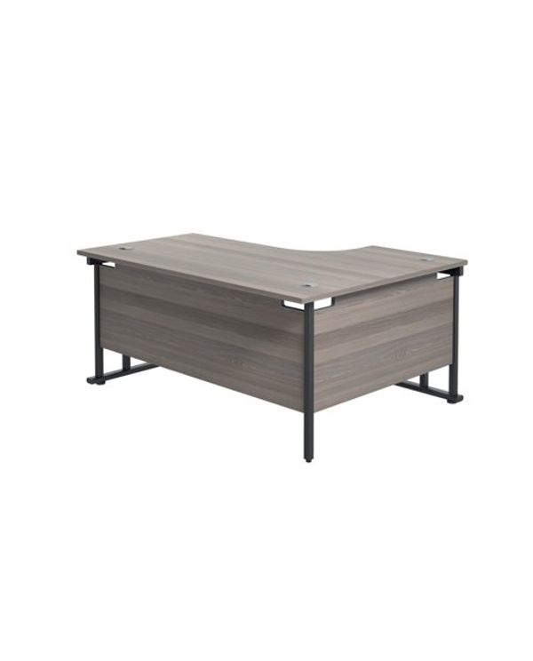 Jemini Radial Left Hand Double Upright Cantilever Desk 1600x1200x730mm Grey Oak/Black KF820390