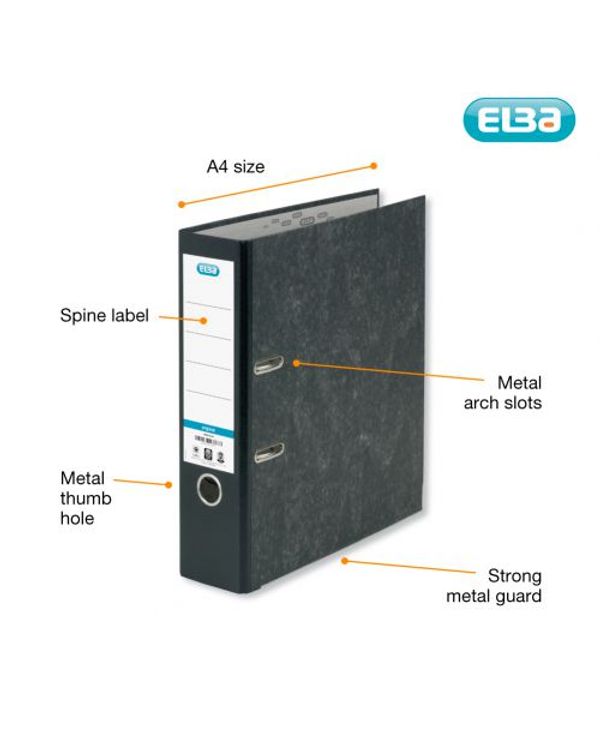 Elba 80mm Lever Arch File A4 Marbled Black (10 Pack) 100081009