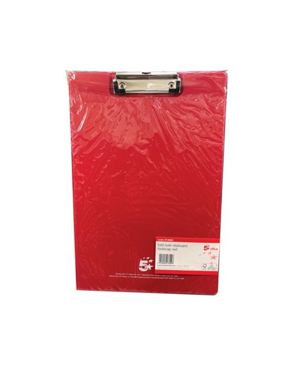 5 Star Office Fold-over Clipboard with Front Pocket Foolscap Red