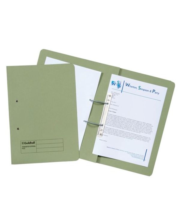 Exacompta Guildhall Heavyweight Transfer Spiral File 420gsm Foolscap Green (Pack of 25) 211/7002