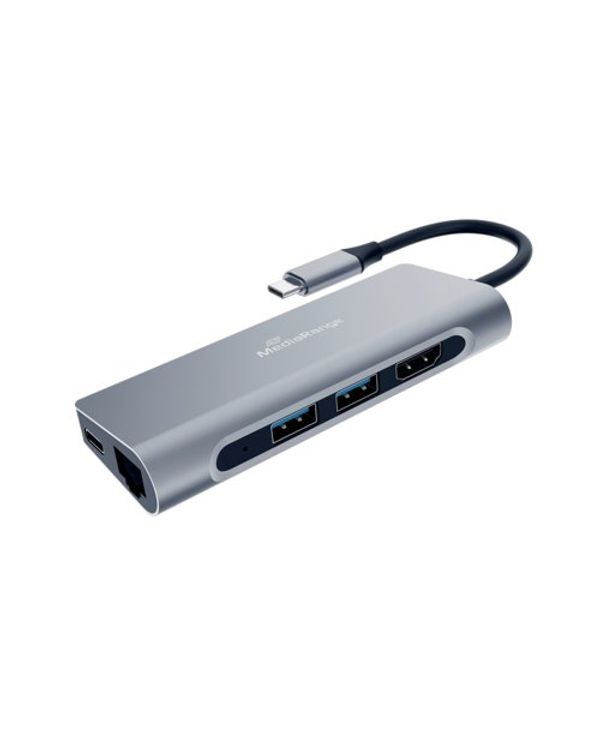 MediaRange USB Type-C Hub 7-In-1 Multiport Adapter for USB-C Devices Silver MRCS510