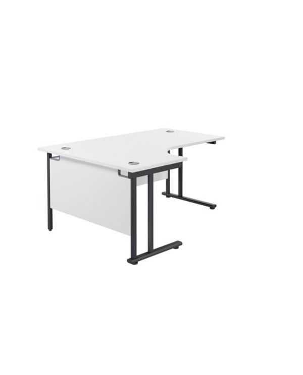 Jemini Radial Left Hand Double Upright Cantilever Desk 1800x1200x730mm White/Black KF820543