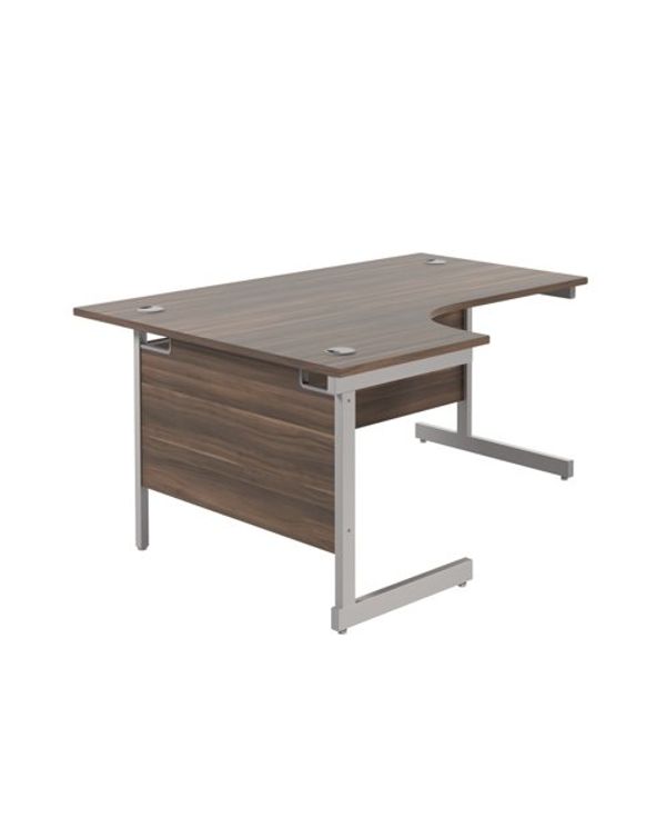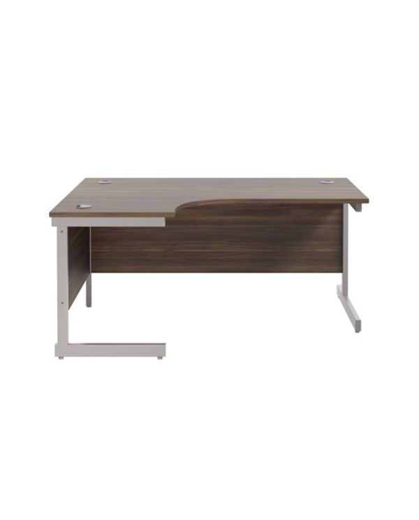 Jemini Radial Left Hand Cantilever Desk 1600x1200x730mm Dark Walnut/Silver KF801778