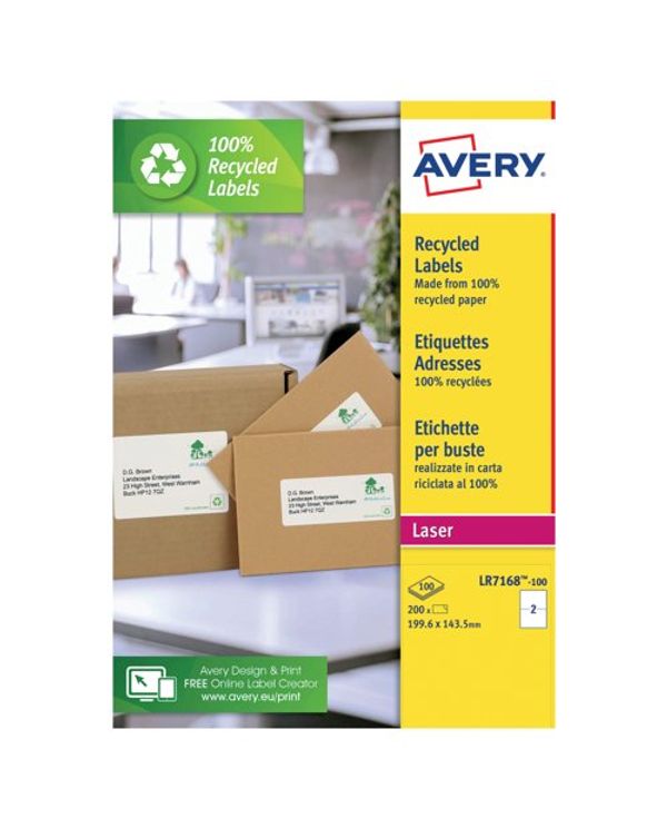 Avery Laser Labels Recycled 2 Per Sheet White (Pack of 200) LR7168-100
