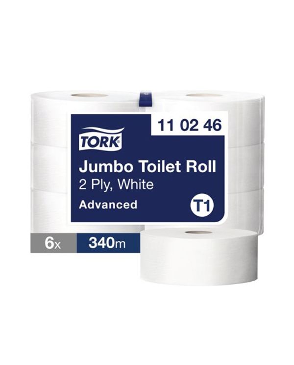 Tork T1 Jumbo Toilet Paper Roll Advanced 2-Ply White 1700 Sheets (Pack of 6) 110246
