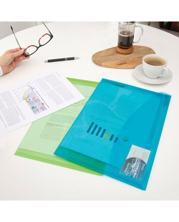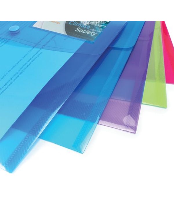 Rapesco Eco Recycled ID Popper Wallet Assorted Bright A4 Transparent (Pack of 5) 0700