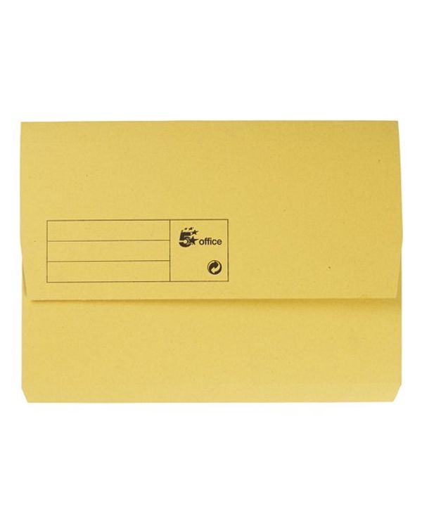 5 Star Office Document Wallet Half Flap 285gsm Recycled Capacity 32mm A4 Yellow (Pack of 50)