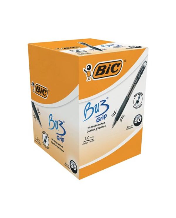 Bic BU3 Grip Retractable Ballpoint Pen Black Pack of 60 996683