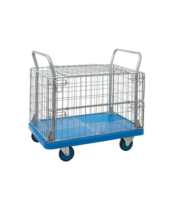 Proplaz Mesh Sided Platform Truck with Hinged Lid and Half Drop Side 300kg Capacity PPU24Y