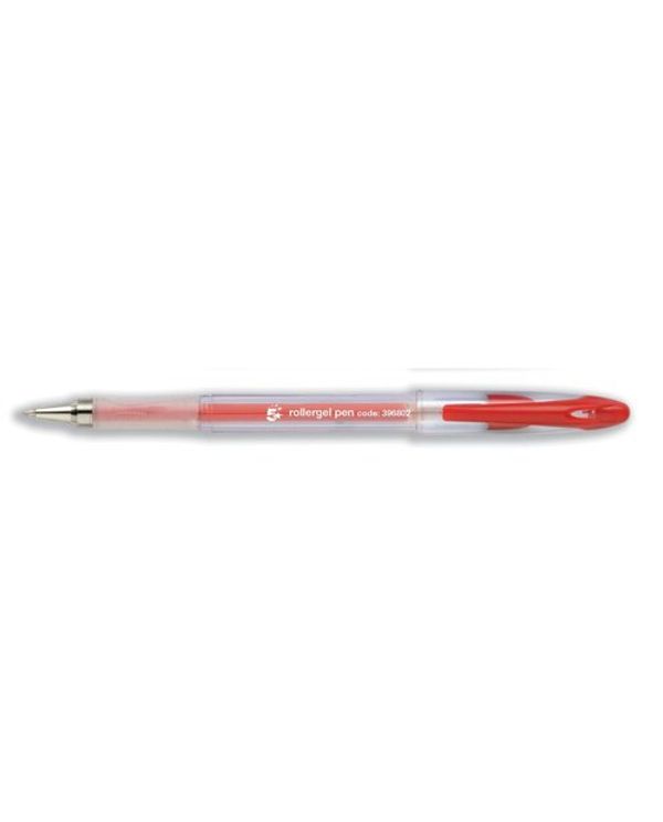5 Star Office Roller Gel Pen Clear Barrel 1mm Tip 0.5mm Line Red (Pack of 12)
