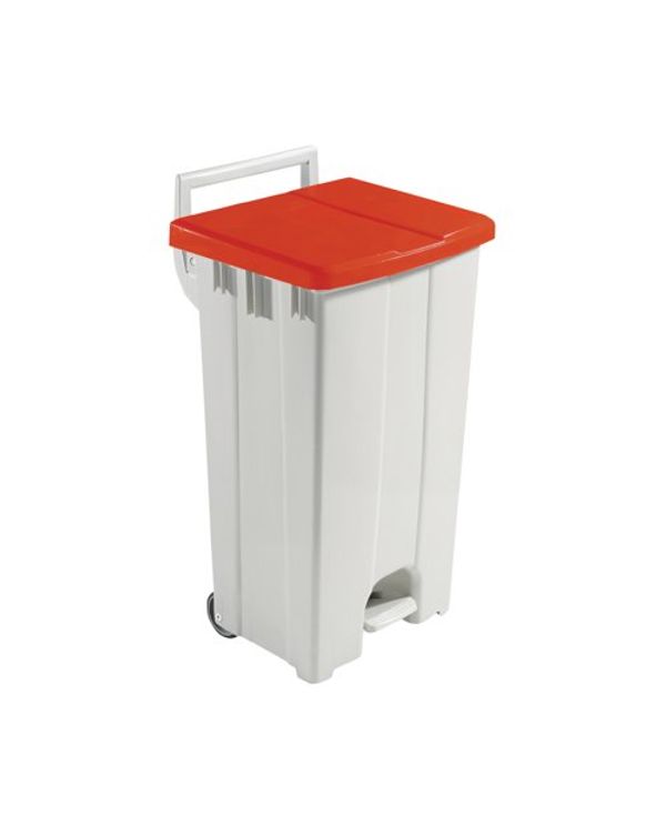 Grey 90 Litre Plastic Pedal Bin with Red Lid 357004