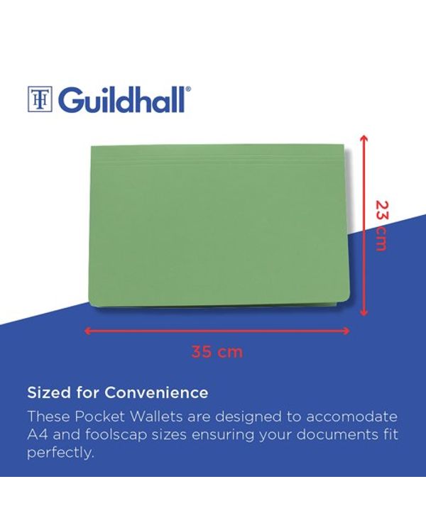 Exacompta Guildhall Full Flap Pocket Wallet Foolscap Green (Pack of 50) PW2-GRN