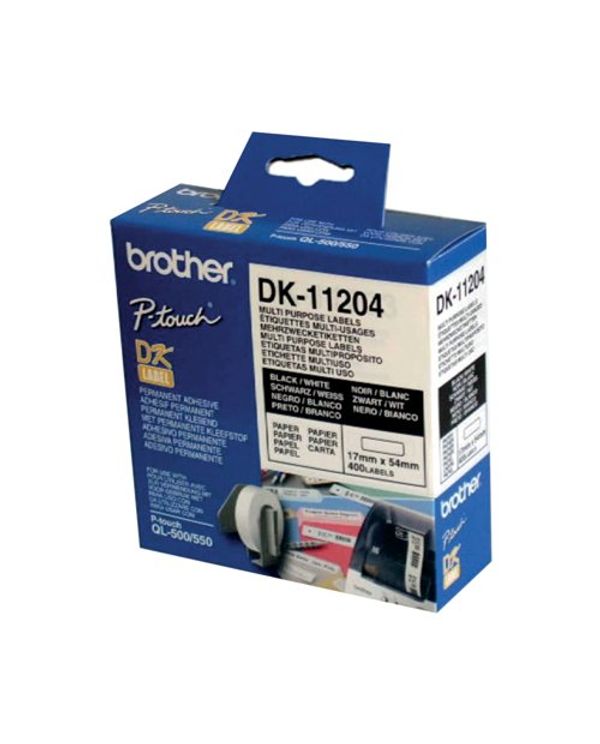 Brother Black on White Paper Multi Purpose Labels (Pack of 400) DK11204