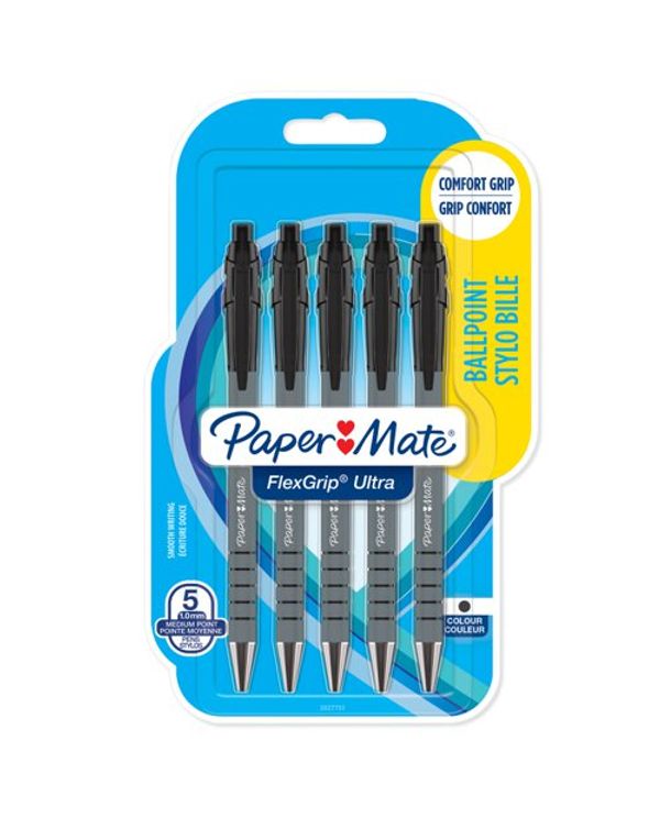 PaperMate Flexgrip Ultra Retractable Ballpoint Pen Medium Black (Pack of 5) 2027751