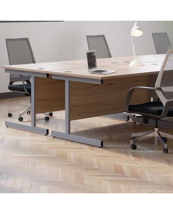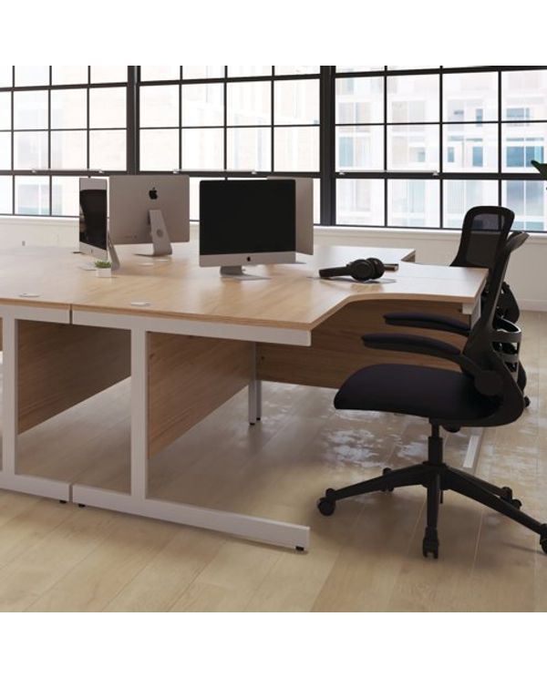 Jemini Radial Left Hand Cantilever Desk 1800x1200x730mm Grey Oak/White KF802095