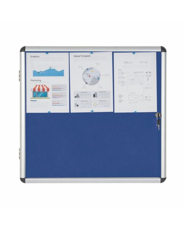 Bi-Office Enclore Display Case Blue Felt Acrylic Aluminium Frame 6xA4 VT620107150