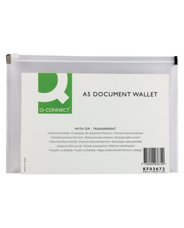 Q-Connect Document Zip Wallet A5 Transparent (Pack of 10) KF03672