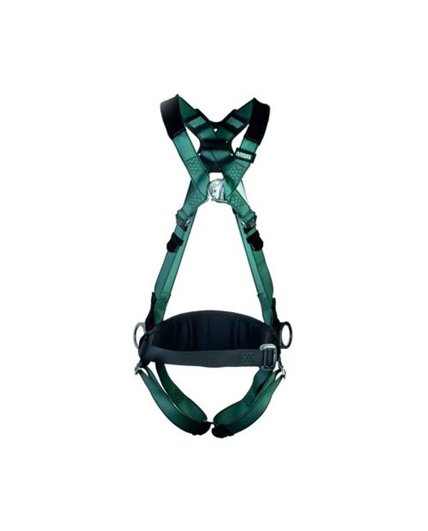 MSA V-Form Full Body Back Chest Hip D-Ring Qwik-Fit Safety Harness with Waistbelt Grn XS MSA10206048