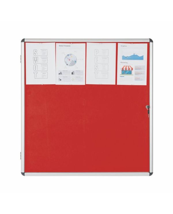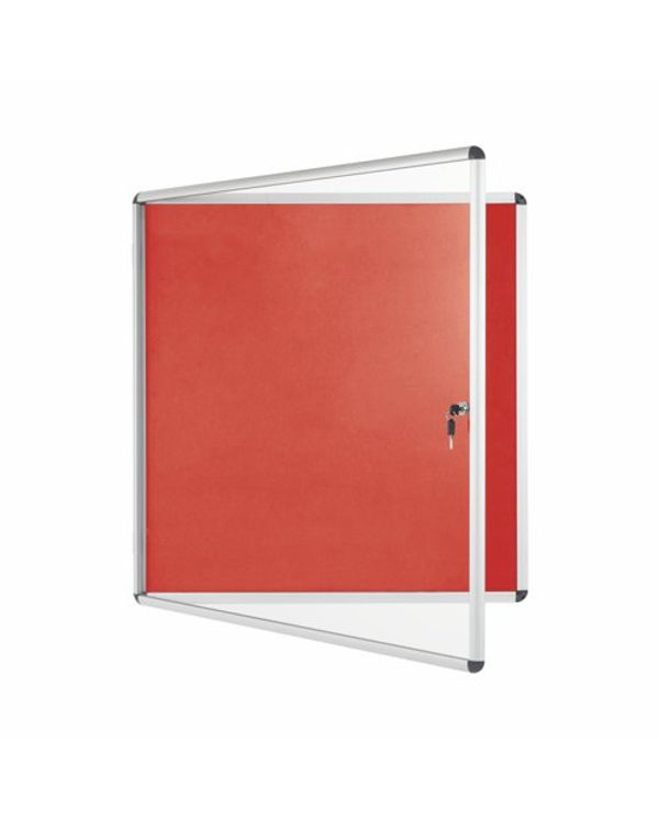 Bi-Office Enclore Display Case Red Felt Acrylic Aluminium Frame 12xA4 VT660105150
