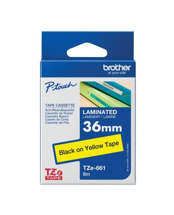 Brother P-Touch TZe Lam Tape Cassette 36mm x 8m Black on Yellow Tape TZE661