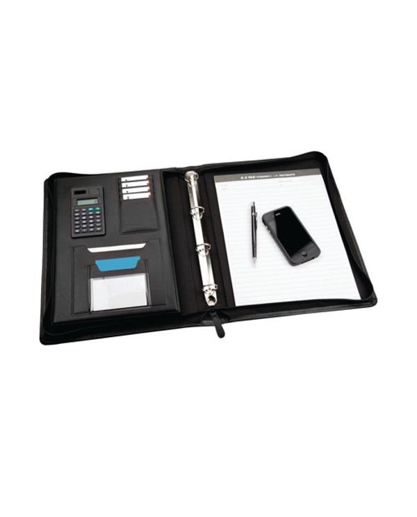 Monolith Leather Look Zipped Ring Binder with A4 Pad A4 Black 2827