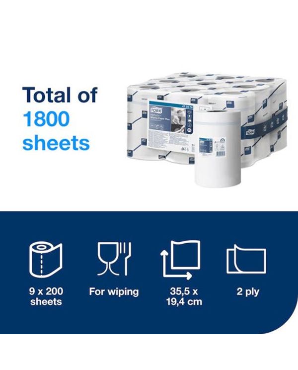 Tork Reflex Multipurpose Wiping Paper Plus 2-Ply 200 Sheets (Pack of 9) 473474